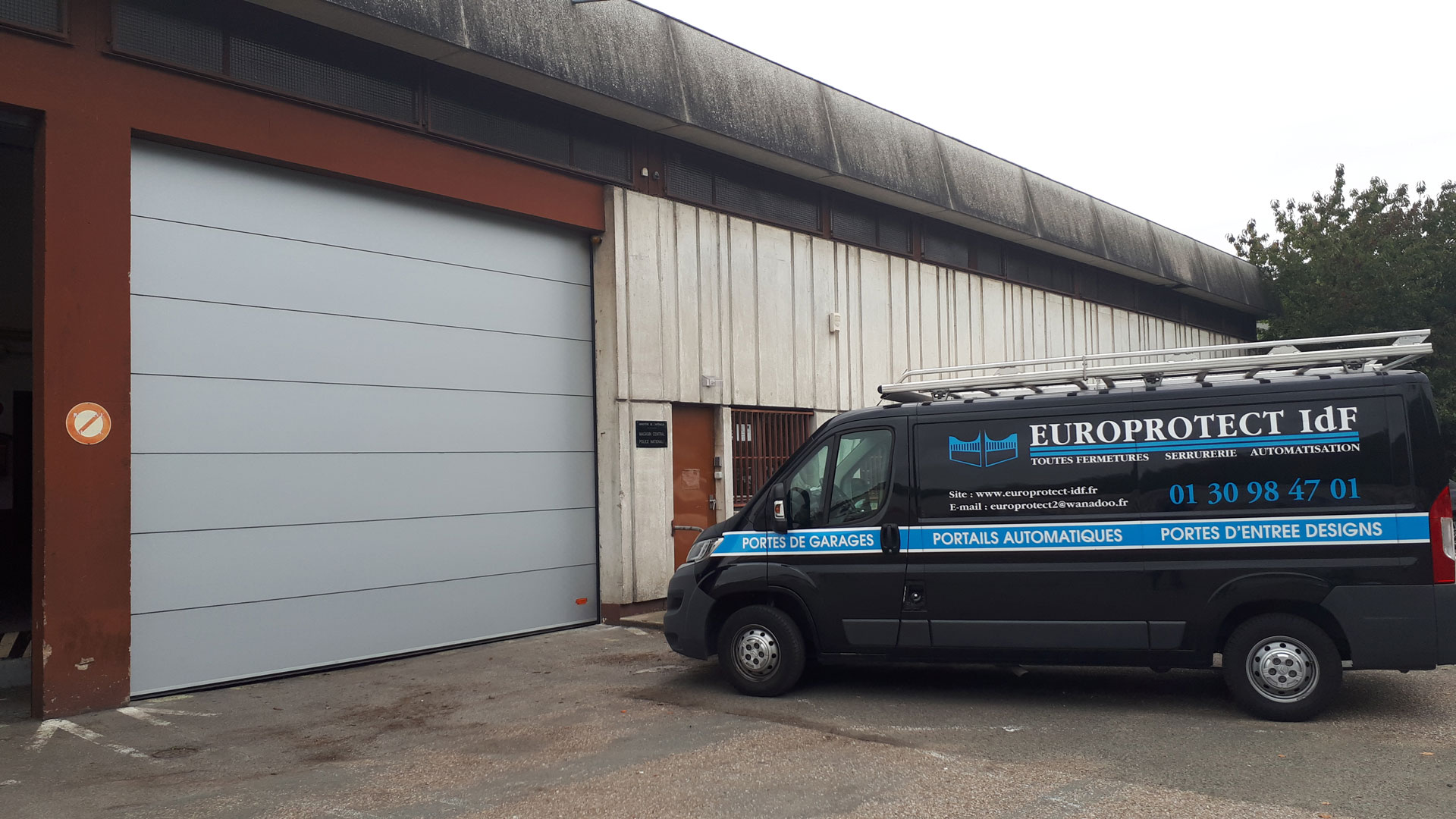 Europrotect-IDF vous propose de nombreux types de porte sectionnelle motorisée. Ces portes situées entre porte à enroulement et porte à basculement vous assurent une optimisation de l’espace avec la possibilité d’ajouter des portillons pour faciliter la circulation de vos collaborateurs.